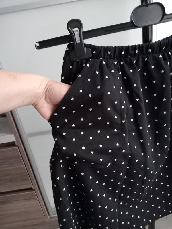 Симпатичная юбка для девочки Принт сердечка Цвет черный, сердечки белые Два кармана Пояс на резинке Тканина тонка двонитка, трикотаж