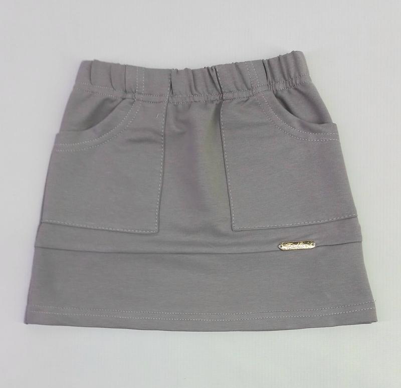 Трикотажна спідниця для дівчинки. Модель на резинці з накладними кишенями та емблемою. Ідеально поєднується з будь-яким одягом. Підійде як для садочку,школи так і для повсякденних прогулянок. Виробник Україна.