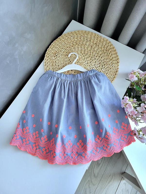Юбочка с вышивкой 🔴Размер 9/10р.140см,стан новая.коттон Длина 36.5 Бутылочка 25-38, утяжка