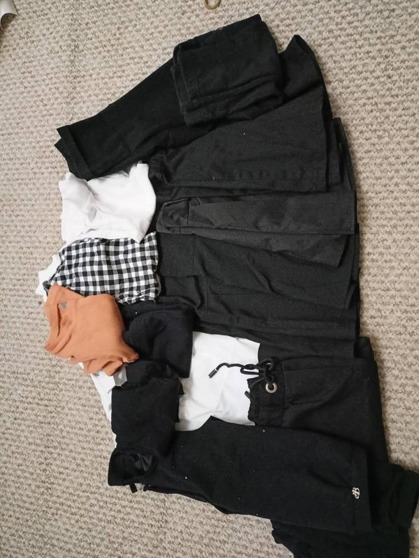 Кардиган Zara Футболка смил Леггинсы 3 поло Некст реглан в рубчик Шортики под юбку Черный гольфик Белая рубашка Юбка атласная Две обычные в складку Шорты юбка next Майка черно белая Футболка Zara Продаю одним лотом. Отдельно фото не делаю. Есть ещё на второй и третий класс.