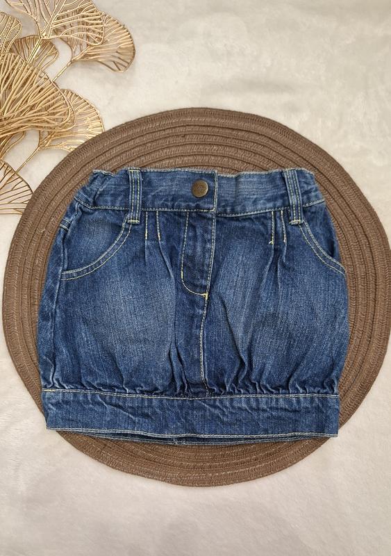 Юбка из джинса от Topomini на девочку 3 лет длина 26 пот 25 есть внутренние резинки для регулировки по обхвату талии Стан - идеальный Джинс плотный