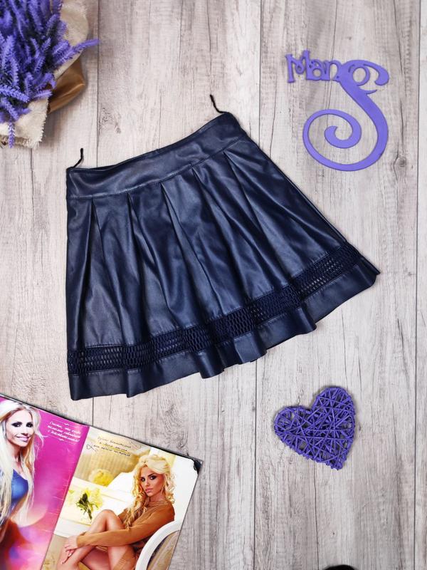 Юбка для девочки кожаная в складку синяя размер 146 (11 лет)