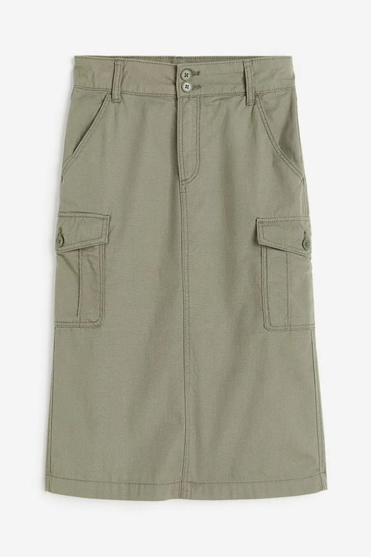 Юбка карго миди для девочки от H&M - Отличное качество. - Склад 100% котон. - Регулируемая резинка на талии, молния и пуговицы, диагональные боковые карманы и карманы с клапанами с обеих сторон спереди. В наличии размер: 152 (на 11-12 лет). Замеры: 152 - длина - 71 см, ширина в поясе - 35 см (имеется утяжка), ширина в бедрах - 44 см