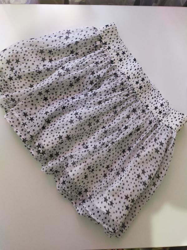 Спідниця на 8-9 років біла в зірочку фатинова,під них підкладлска з хб тканини білого кольору,на літо не жарка.