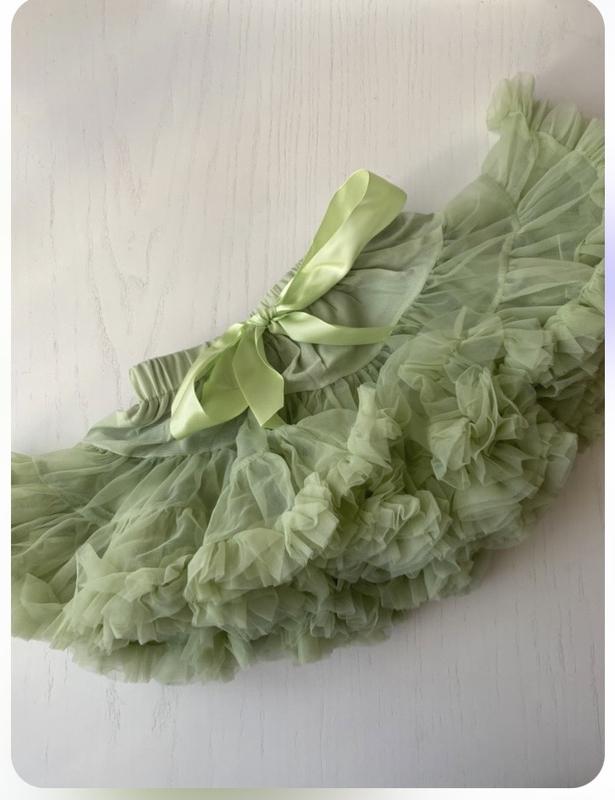 Очень красивая фатиновая юбочка,фатин не колеблется очень приятный многослойный Цвет оливковый Возраст 0-2 года Один раз были одеты на фотосессию