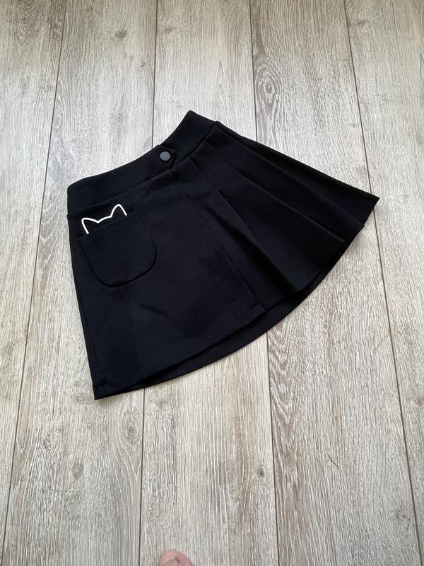 Юбка черного цвета на резинке, из плотного трикотажа, с одним карманом. Производитель «Mevis” Украина, состав : 50%-полиэстер 45% хлопок и 5%-пандекс. «116»- пояс - 24 см, длина - 29 см, ширина по низу -50 см. «128» - пояс - 25 см, длина - 32 см, ширина по низу - 54 см. «140» - пояс - 27,5 см , довжина - 35 см , ширина по низу - 58 см.