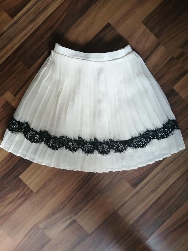 Юбка на девочку 5-7 лет, шифон с кружевом, цвет Молочный, пояс на резинке утяжки, длина 32 см, без нюансов