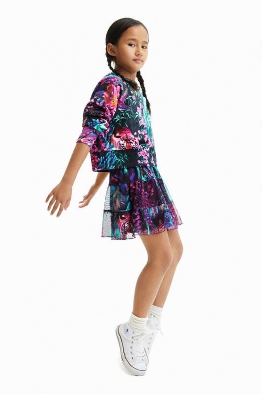 Расклешенная мини-юбка из разноцветного фатина с цифровым принтом, вдохновленным природой и фантазией, украшена воланами и эластичной талией. - Расклешенный крой - Материал тюль - Разноцветная (оттенки фиолетового, синего, зеленого) - Длина мини - Детали рюши, принт единорога, эластичная талия - Устойчивые волокна LenzingTM EcoveroTM РАЗМЕР: 7/8 лет, 122/128 рост ЗАМЕРЫ: длина 29 пояс 26/40 СОСТАВ: вискоза полиэстр СТАН: нова ➖➖➖➖➖➖➖➖➖ Вещи в наличии👗🧥👠 Фото на себе не делаете. 🙅♀️ Отправка: НП, Укрпочта📦 Вся необходимая информация придам😊