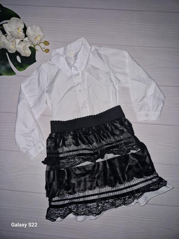 длина 38 см Пот 29-45 см Пос 42 см Китай, этикеток не имеет, поэтому ориентир на замеры. юбка слоями кожа- шифон, полупрозрачные, поэтому носить следует на платье- рубашку, или на черные непрозрачные колготки.Плятье рубашка, что в объёме присутствует в наличии на рост 120 см. Всё вместе 400 грн.