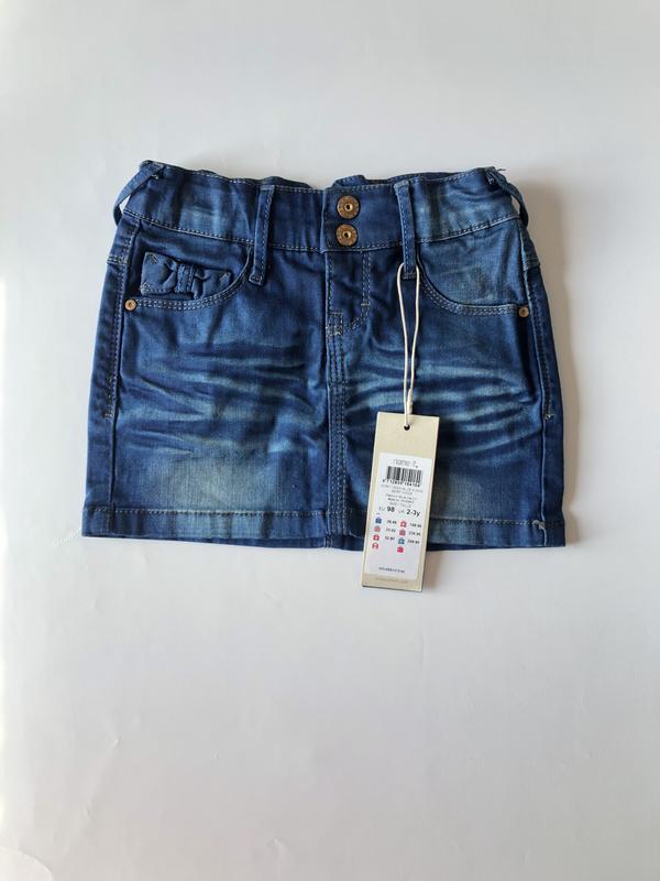 Джинсова спідничка для дівчинки від Name it 💙 *стан - нова (з біркою) *розмір - 98 (2-3 роки) *стильні кишені - сердечки *є регулятор розміру *98% бавовна 2% еластан