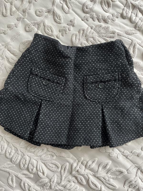 Шерстяная юбка в горошек, снизу на подкладке. Качественная, фирменная, теплая, не колется. На девочку 6 лет.