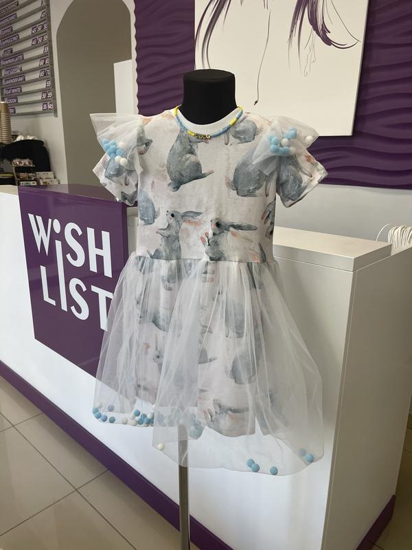 Платье «Зайцы» 🐰🩵 Размер в наличии 👉 122-134 см Склад -95% бавовна ✅850 грн Тканина 100% бавовна Шар 2 х нить