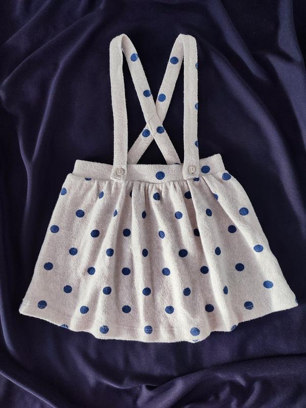 Интересный сарафан-юбочка для девочки подойдет на 1,5-2,5 рочки (размер 86-92) Ткань натуральная, тёплая хорошо тянется приятная к телу - цвет бежевый в синий горошек! Состояние отлично! Длина юбочка 23см, ПОТ 21см (тянется) Стоимость указана продажа - на обмен рассмотренным предложением!)