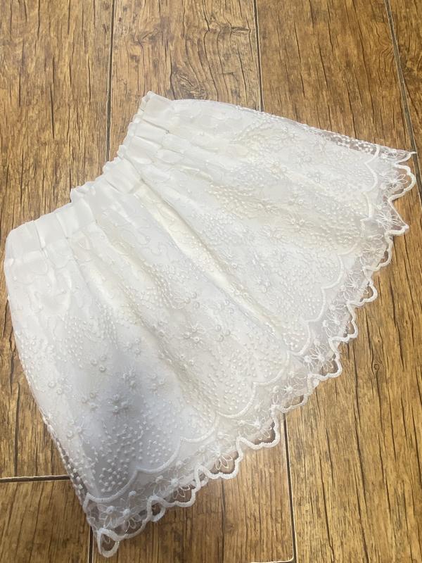 Нарядная юбочка для девочки: верх кружево с люрексной нитью, два подложила - первый из шиона, нижний из хлопка. На дырочке стоит размер 104 (4 года) но мы одевали и при 128.