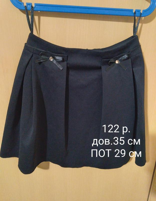 Спідниця шкільна.Є утяжка,на замку.Колір темно синій.Заміри на фото.