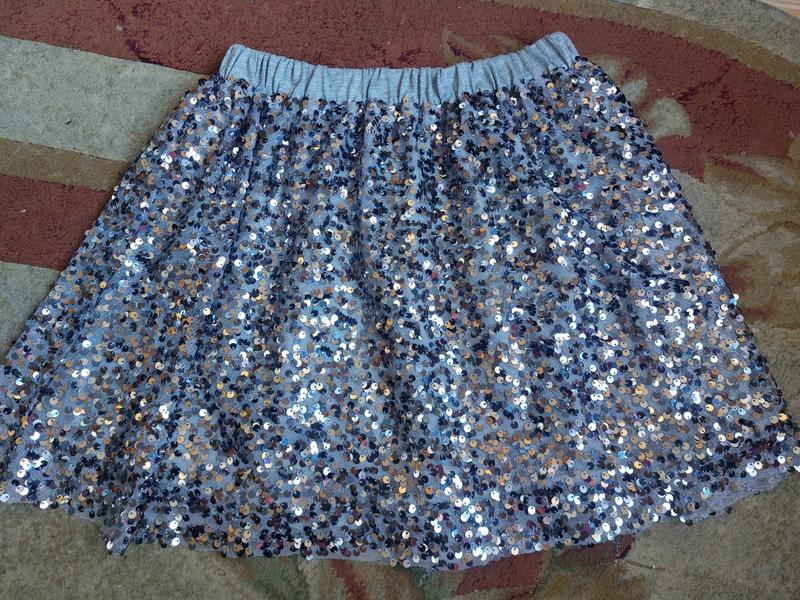 блискуча святкова спідничка дівчинці у відмінному стані на зріст 134-140 см, на котоновій підкладці, довжина 37см, талія на ризниці 28см