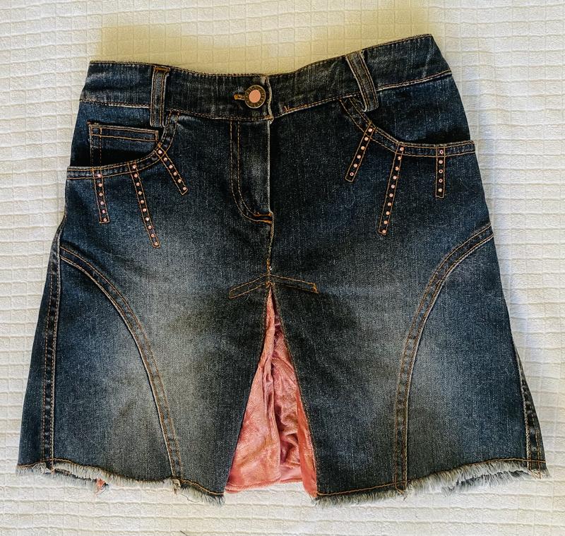 Юбка синяя джинсовая с бархатными розовыми вставками итальянского бренда Blumarine. Оригинальный.