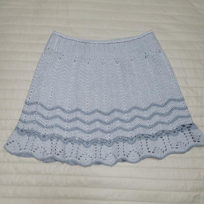 Детская юбочка ручной работы. Вязаная крючком из мягкой шерсти, не колеблется. Юбочка на мягкой резинке, не слабая и животик не давит. Фото выполнены лицевой и анатомической сторон. Хорошо подойдет девочке начальных классов. Длина - 32см Ширина переда - 38см напиобхват пояс - 27см (+ резинка)