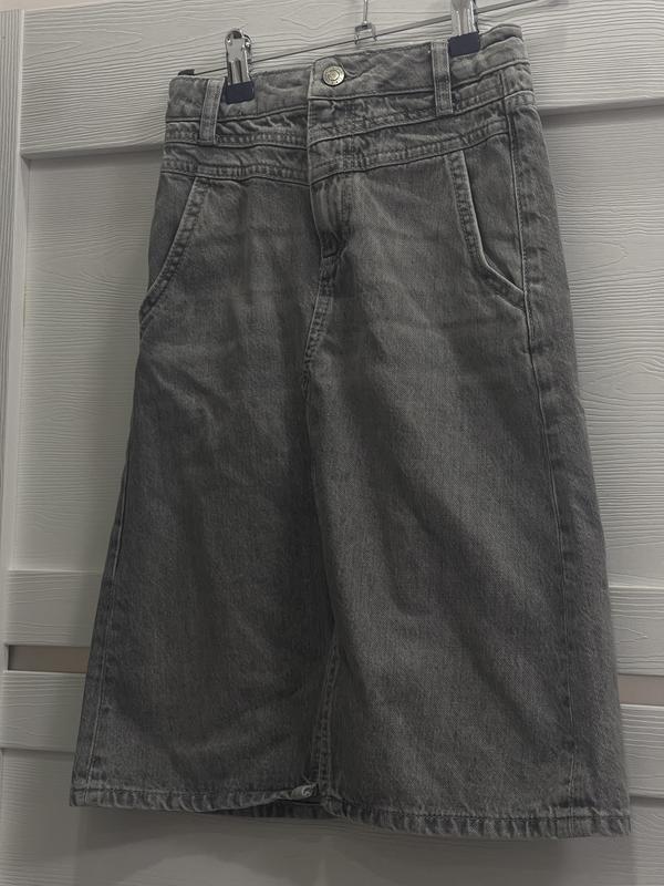 Серая джинсовая юбка, с маленьким разрезом ближе к коленам, пояс регулируется, бренд ZARA, рост 134 см, на 9-10 лет