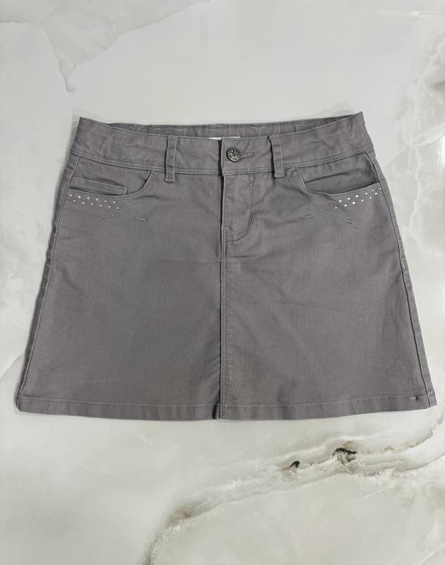 Джинсова спідничка зі стразами, стан ідеальний. Є затяжка на талії. Розмір вказаний 10/138, можна й на більше. Орієнтуйтеся за замірами на фото. Джинс тягнеться.