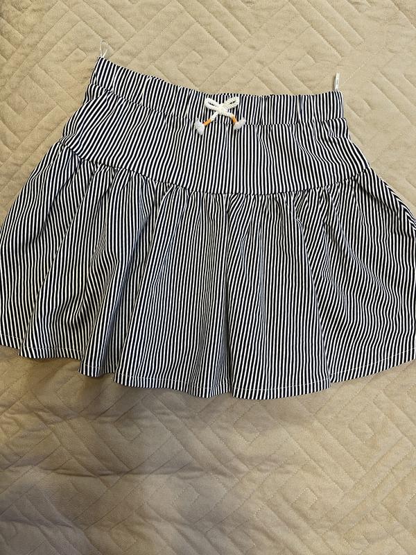Одетая один раз, полоска, качество супер, ткань тянется, Пояс 31+см, длина 36-37см, очень красивая
