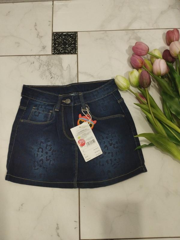 Спідниця джинси з леопринтом