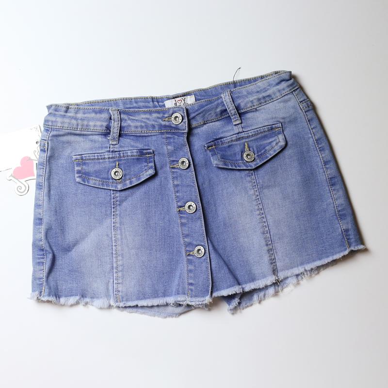 Джинсовая юбка-шорты для девушки (подростковая) 👗✨ Стильная короткая джинсовая юбка-шорты – идеальна для современных модниц! ✅ Материал: качественный джинс ✅ Декор: стильные пуговицы спереди + потертости и необработанный край ✅ Состояние: новый, с бирками 📏 Размеры: 🔹 Подходит на возраст: 12-16 лет / XS-S 🔹 Полуобхват пояса: 36-41 см (обхват талии 72-82 см) 🔹 Длина: 27 см 💌 Открытка Новой Поштой или Укр-почтой. 💬 Пишите в сообщения для деталей!