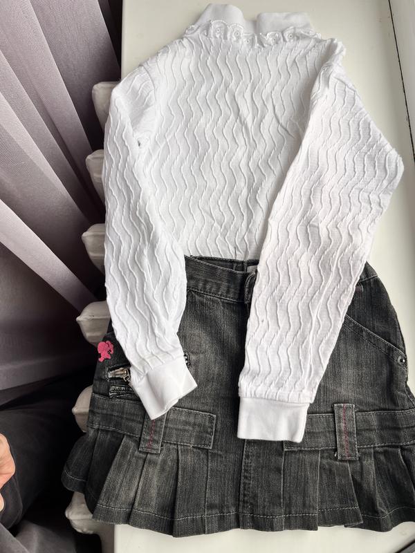 Білий гольфик і джинсова спідниця в хорошому стані,усе видно на фото,на вік 5-7 років