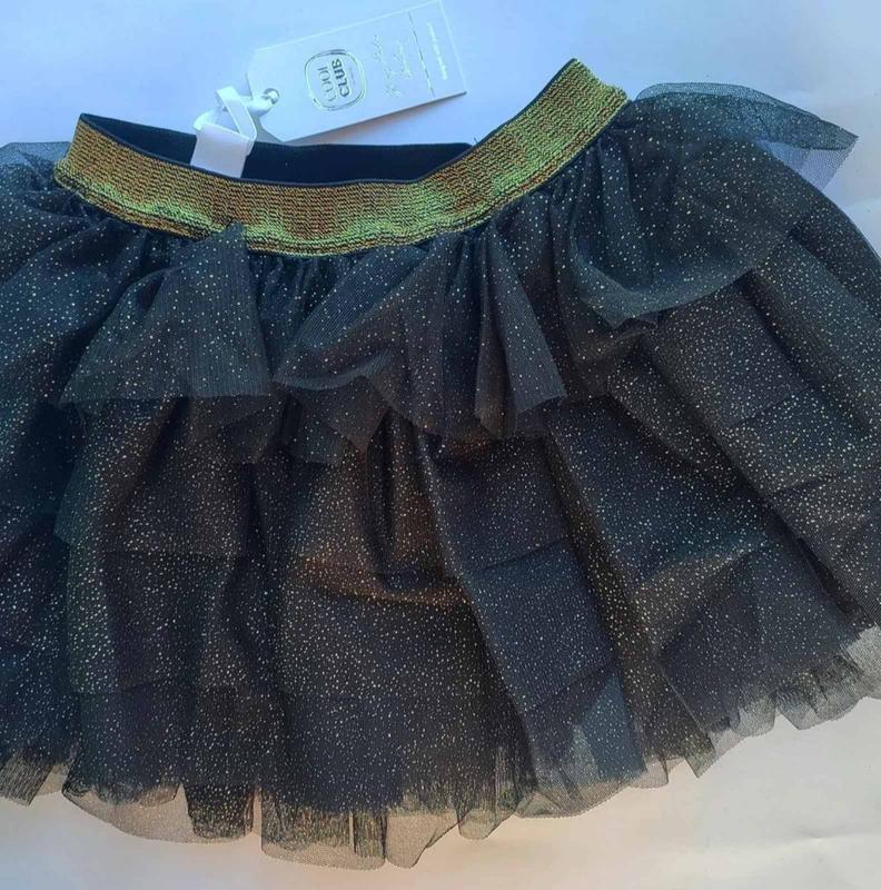 Пышная черная с золотистыми вкраплениями юбка. имеет резинку. Замеры: длина 28 см, полуобхват по талии 23 см (в свободном состоянии)