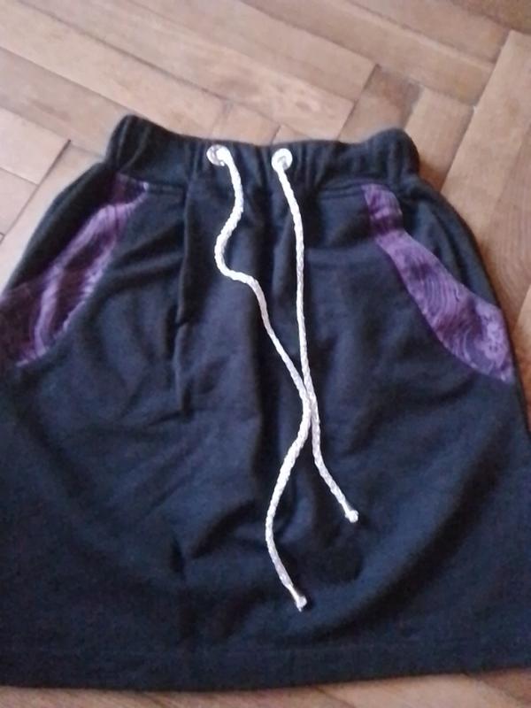 Спідничка дуже гарно зроблена,по боках роспорочки,на заді кишенька. Довжина 37 см пояс на резинці 24 см ще тягнеться