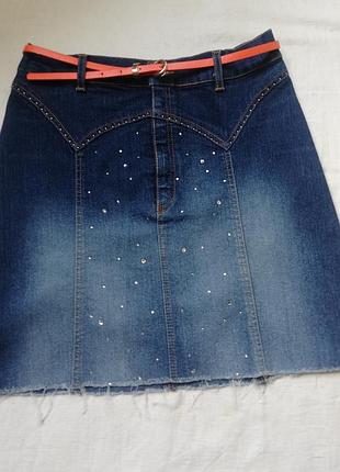 Джинсовая юбка для девочки. Стрейч. Довжина 41 см поб 44-47 см пот 33-35 см.