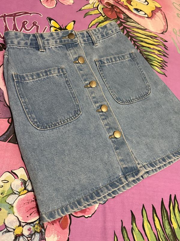 Спідниця джинсова Дуже класна, застібка на ґудзиках Талія п/обх.33см Бедра п/обх.44,5см Довжина 41см Ціна 130 грн