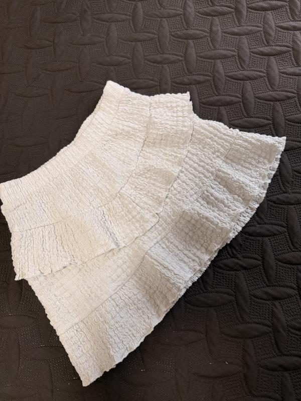 Дуже гарна стильна спідниця на дівчинку 6-7 рочків Zara. Заміри: Резинка - 26 см., тягнеться до 37 см. Висота - 29 см.