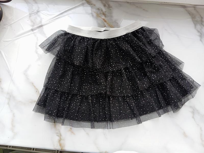 Фатиновая юбочка с подкладкой. цвет черный с блестками. Размер - 6 лет (113-119 см). ПОТ 27см, тягнеться до 35 см.