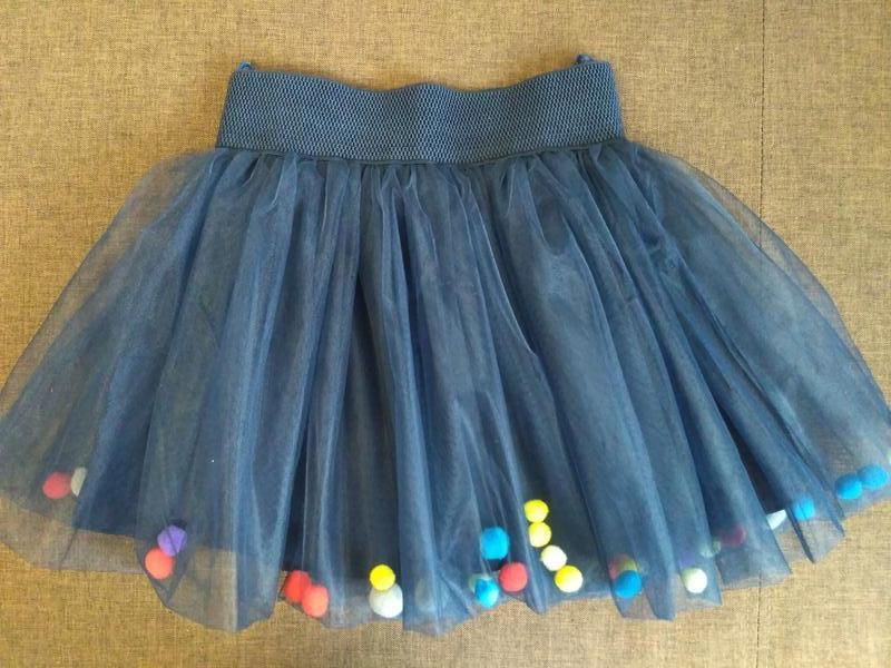 юбка из мягкого еврофатина темно-синего цвета с помпонами .длина29см, пояс-резинка 5см , объем 56 см