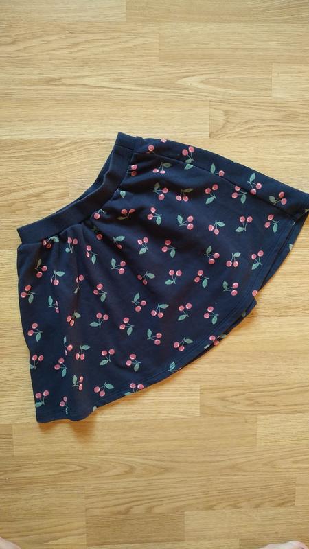 Юбка коттоновая фирмы H&M на девочку 6-8 лет, на рост 122-128 см. Принт у вишенки. Стан идеален. Длина 36 см, пояс 28-38 см.