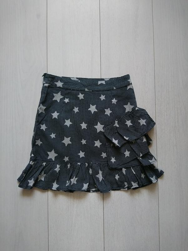 Нова сток. Тонка. С подкладкой. Материал вискоза. На возраст 10 лет. Высота 38 см. С боку на замочке. Полуобъем пояса 30 см и стягивается резинкой на пуговицах.