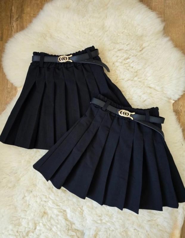 через кнопку купить только полная оплата!!! Юбочка в складку Пояс на широкой резинке, красиво тянется. Сбоку застегивается на молнию. Поясок в комплекте. Цвет-черный. Ткань - тиар премиум качества. Замеры: 122 длина - 34см, пояс - 24см. 128 длина - 35см, пояс - 25см. 134 длина - 36см, пояс - 26см. 140 длина - 36см, пояс - 26см. 146 длина - 38см, пояс - 28см. Мс