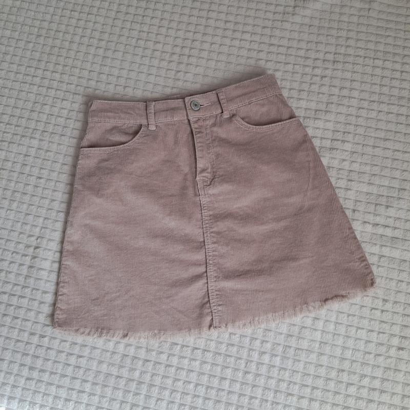 Бледно розовый пудровый, очень интересный, красивый цвет. 152/158, берку отрезали Стан идеален, без следов носки. Длина 37см Пояс 30 немного тянется Стегна 47