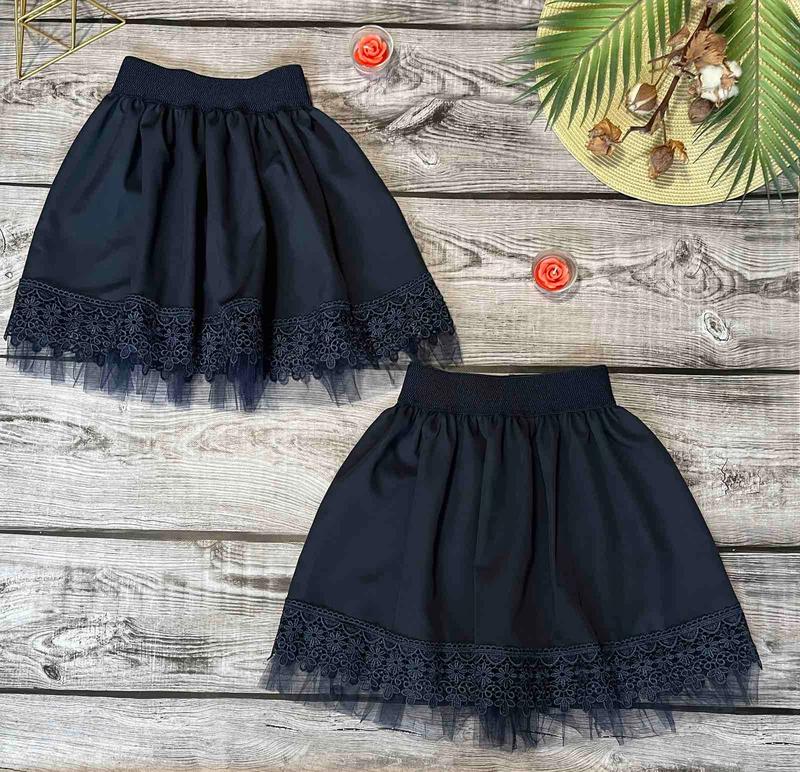 В наличии! Юбка для школы с красивым кружевом Ткань - костюмка мадонная + кружево и евросетка. Замеры: длина вместе с сеткой. 134 длина - 45см, пояс - 26см.