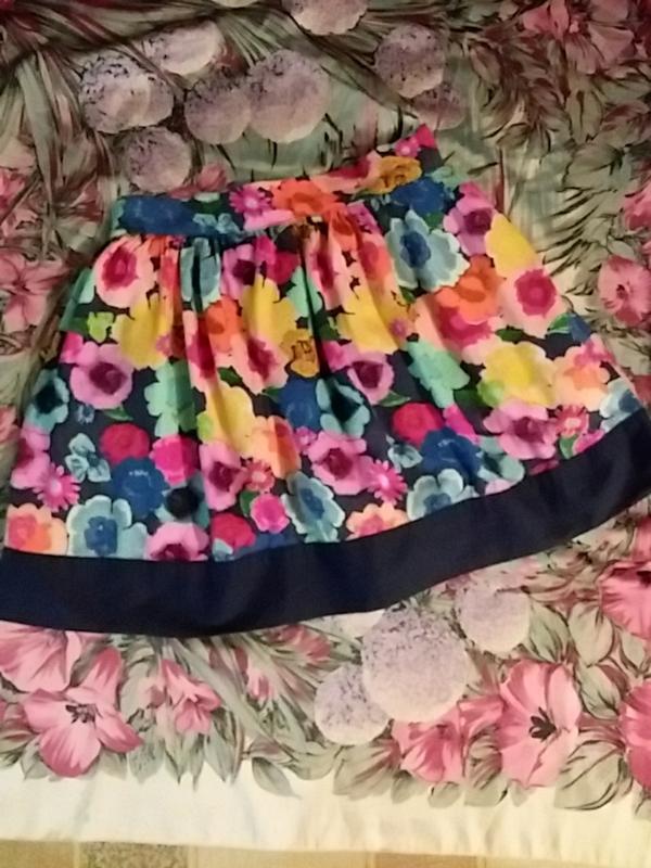 8-9р, яскравий колир, красивий принт, ззаду на резинке,вискоза, котон,, стан дуже хороший без дефектов, длина 37, пот27-28,дуже гарна