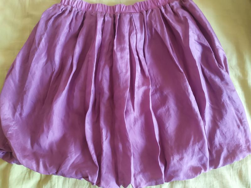 Юбка для девочки, примерно на 10-13 лет, в зависимости от роста. натуральный шелк, подкладка трикотаж (хлопок) вместе образуют пышность юбки. ширина в резинке от 31 до 41 тянется. длина юбки 40 см. Цвет сиренево-розовый
