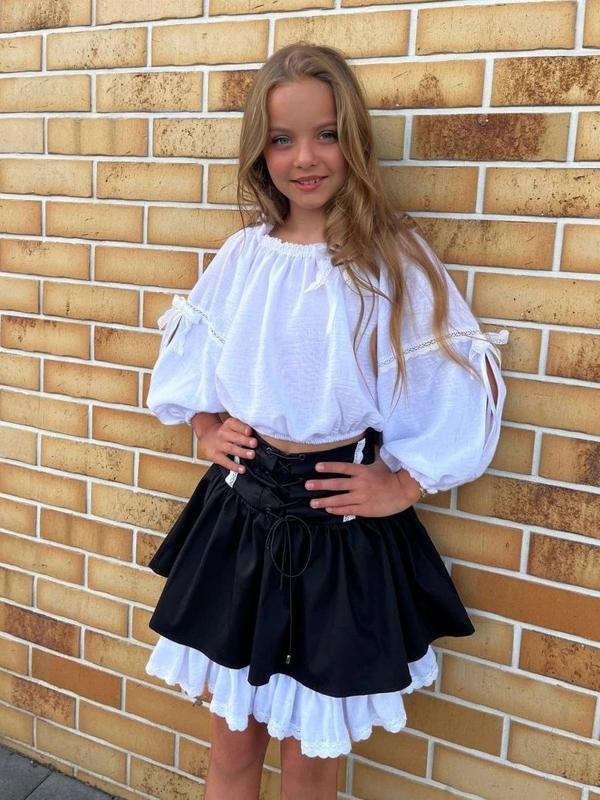 Арт 6643 Юбка- ламбадка "Оливия", имеет натуральную подкладочку, верх юбочки-стрейч коттон, сбоку молния, сзади в талии резинка спереди шнуровка для регулировки удобной посадки Супер качество! Цена 935 грн Рост/длина/пот похибка+-2см 140-146/41/26-1шт 146-152/42/27-1шт 152-158/44/28-1шт 158-164/45/29-1шт 164-170/46/31-1шт