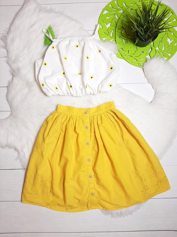 ♥️Топ с вышитыми цветами и юбка с прошвой на 9 лет 🌿шир до 39 🌿долж 34 ♥️ 🌿пот 27 до 37 🌿длиж 46 ♥️Состояние новых....185+285