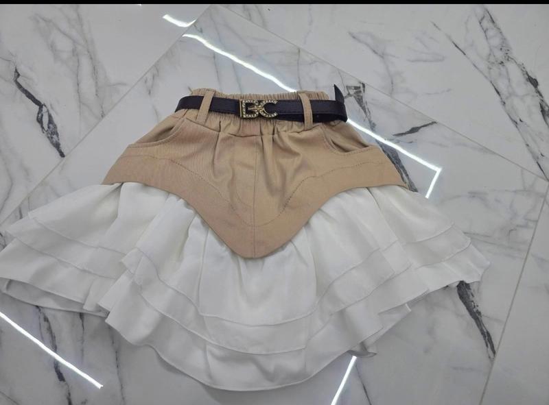 через кнопку купить только полная оплата!!!! Модная юбочка с белыми воланами Имеет высокую посадку. Поясок в комплекте. Ткань стрейч -коттон, низ - шифон+подкладка. Замеры: 134 длина - 33см, пояс - 24см, полуобхват бедер - 40см. 140 длина - 34см, пояс - 26см, полуобхват бедер - 41см. 152 длина - 36см, пояс - 27см, полуобхват бедер - 43см. Мс