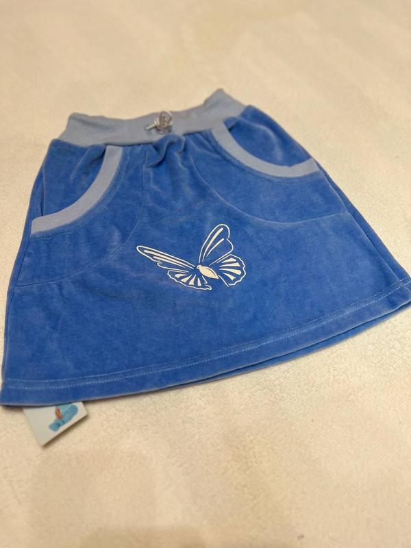 Велюрова спідниця р.32 /3-5р Довжина - 31см, резінка на талії -42 см Дуже гарна та якісна Розпродаж дитячого магазину ( весь одяг новий з етикетками) Дивіться інші мої лоти щоб зекономити на доставці + є також одяг у подарунок ( фото в особисті після покупки по бажанню )
