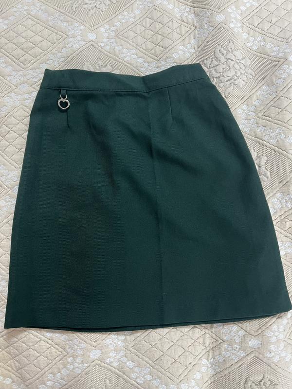 Вік - 6-7 років Довжина - 37 см Ширина - 35 см, по низу - 39 см Талія (попереду планка, позаду резинка) - 26 см Зліва на спідниці є карман на змійці Декор - спереду є металеве серденько