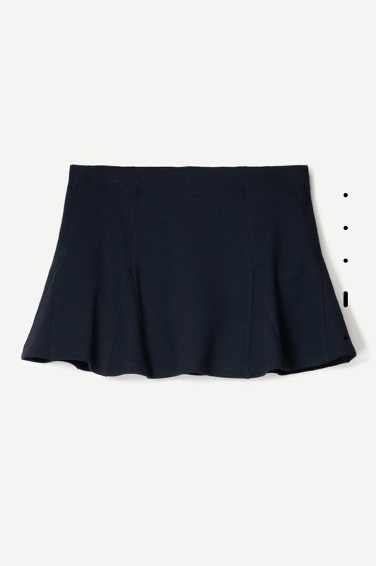 Новая юбка, с биркой. Шорты пришиты, идут вторым слоем. Достаточно плотная ткань, 62% вискоза, 34% полиэстр, 4% эластан. Цвет темно-синий, почти черный. Размер XS, подойдет на худи девочку-подростка.