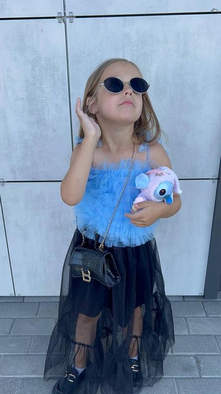 Юбка: Длинная черная юбка-макси. Изготовлена из легкой, полупрозрачной сетки. Имеет многослойный фасон. Пояс на резинке, обеспечивающий удобную посадку. Отлично сочетается с топом, создавая элегантный и стильный образ. Размер: 104-146