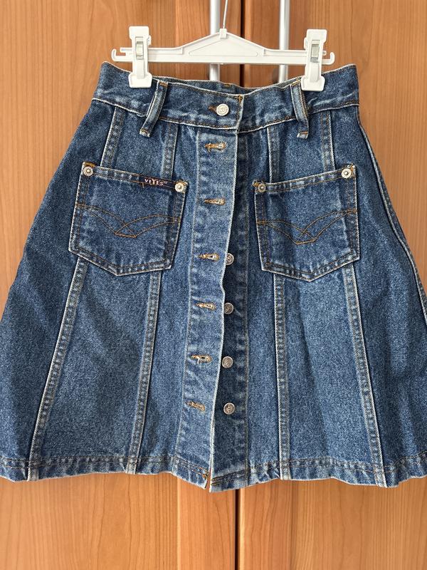 Стильна спідниця для дівчинки підлітка. Або на дуже струнку дівчину, розмір XS. Стан нової 🤩 Цупкий, якісний матеріал (джинс), крій трапецією. Повністю застібається на ґудзики. 34 розмір підлітковий. Заміри: обхват талії 60 см, обхват стегон 90 см. Довжина спідниці 45 см.